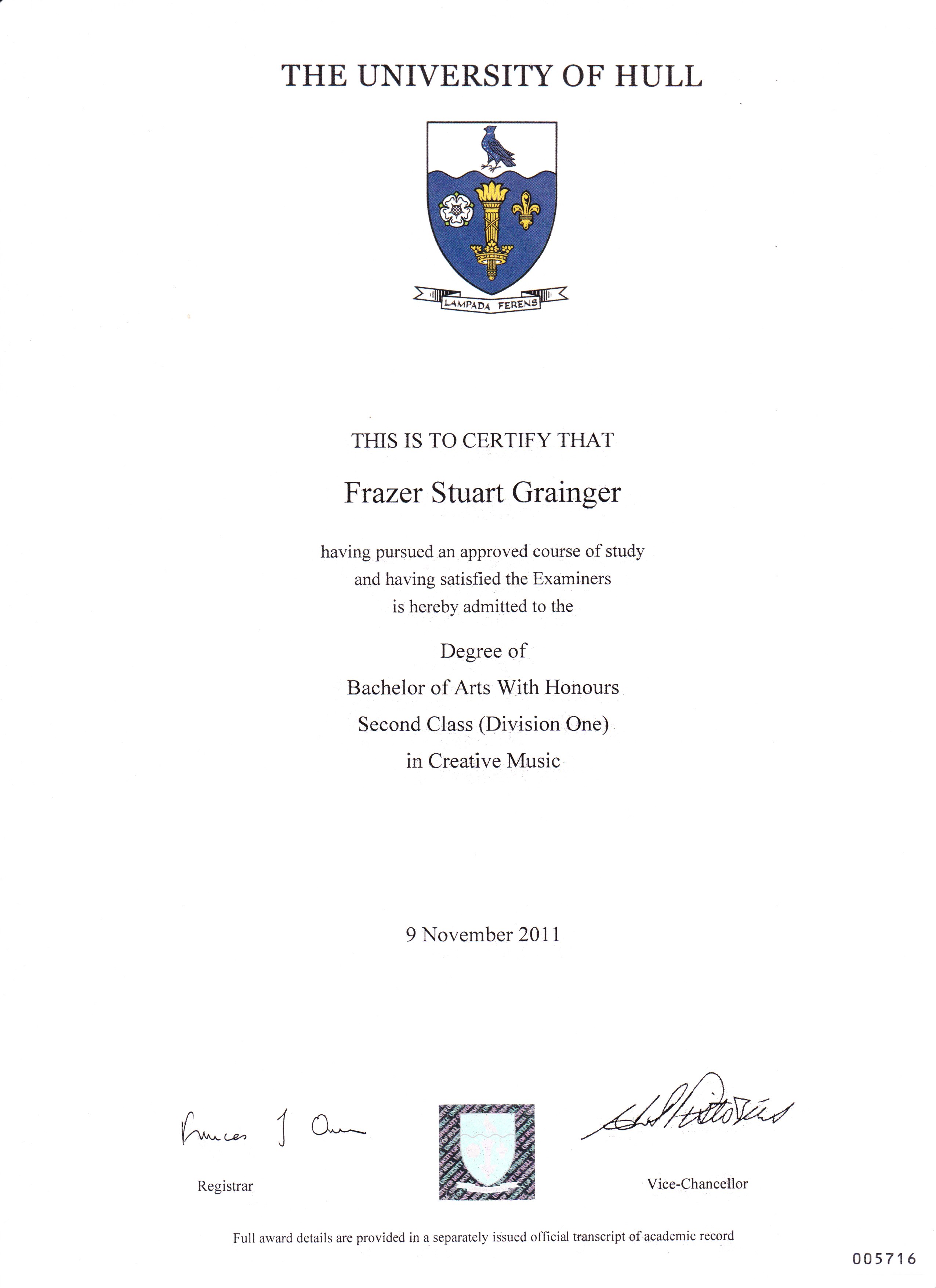 BA Honours (2:1) - Creative Music