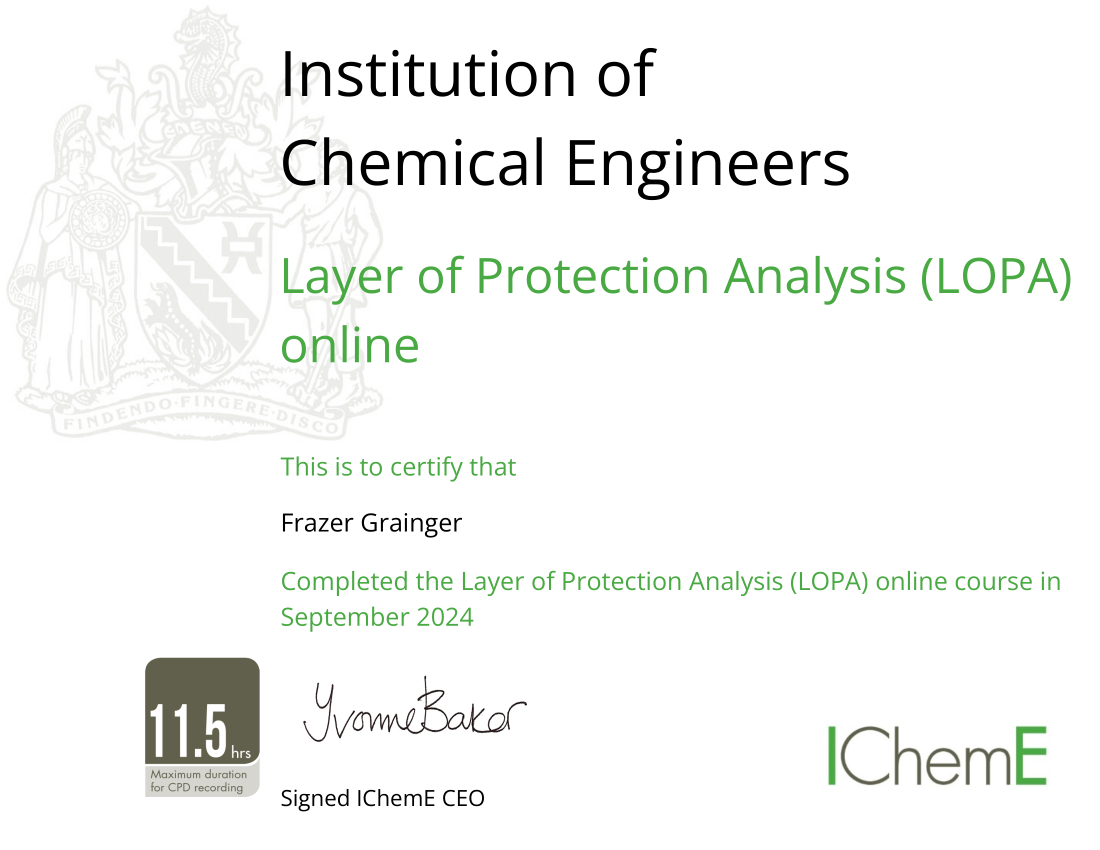A highly skilled and versatile engineering professional with over 7 years of experience working at an Upper-Tier COMAH site. My expertise spans the development and implementation of robust safety strategies, managing complex gas distribution systems, and leading critical risk analysis and hazard studies. I excel in operational excellence, regulatory compliance, and cross-functional collaboration, with a proven track record of delivering impactful results across high-risk industrial environments.